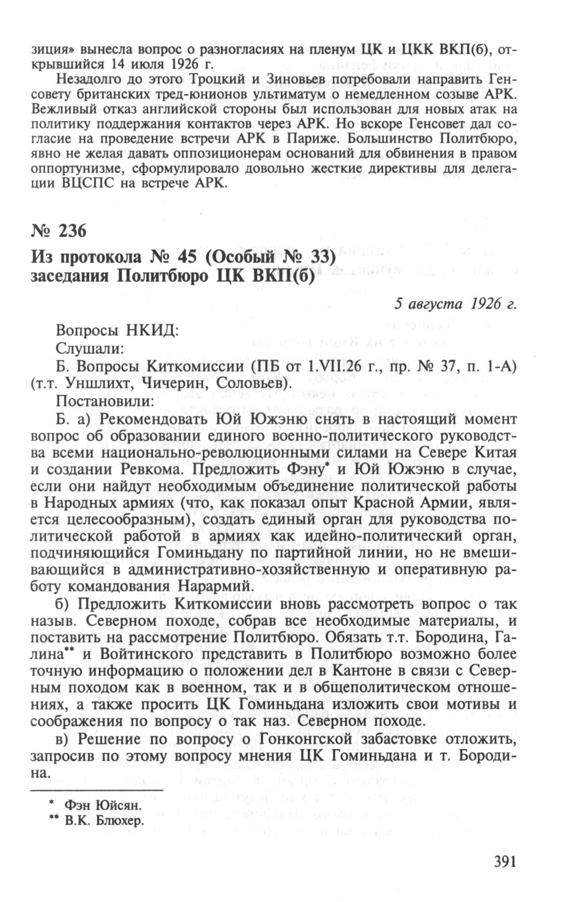 Из протокола № 45 (Особый № 33) заседания Политбюро ЦК ВКП(б). Вопросы китайской комиссии. 5 августа 1926 г.