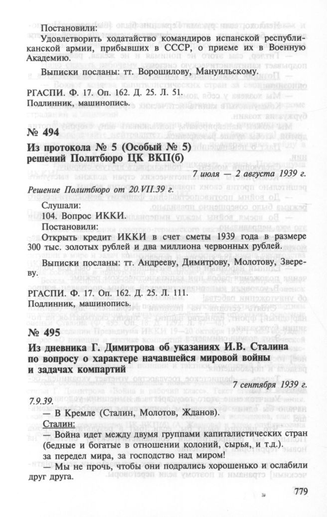 Из протокола № 5 (Особый № 5) решений Политбюро ЦК ВКП(б). Об открытии кредита для ИККИ. 7 июля —2 августа 1939 г. // РГАСПИ. Ф. 17. Оп. 162. Д. 25. Л. 111. Подлинник, машинопись.