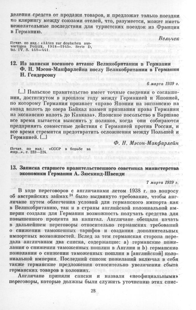 Из записки военного атташе Великобритании в Германии Ф. Н. Мэсон-Макфарлейна послу Великобритании в Германии Н. Гендерсону. 6 марта 1939 г. // Печат. по изд.: «СССР в борьбе за мир...», с. 223—224.