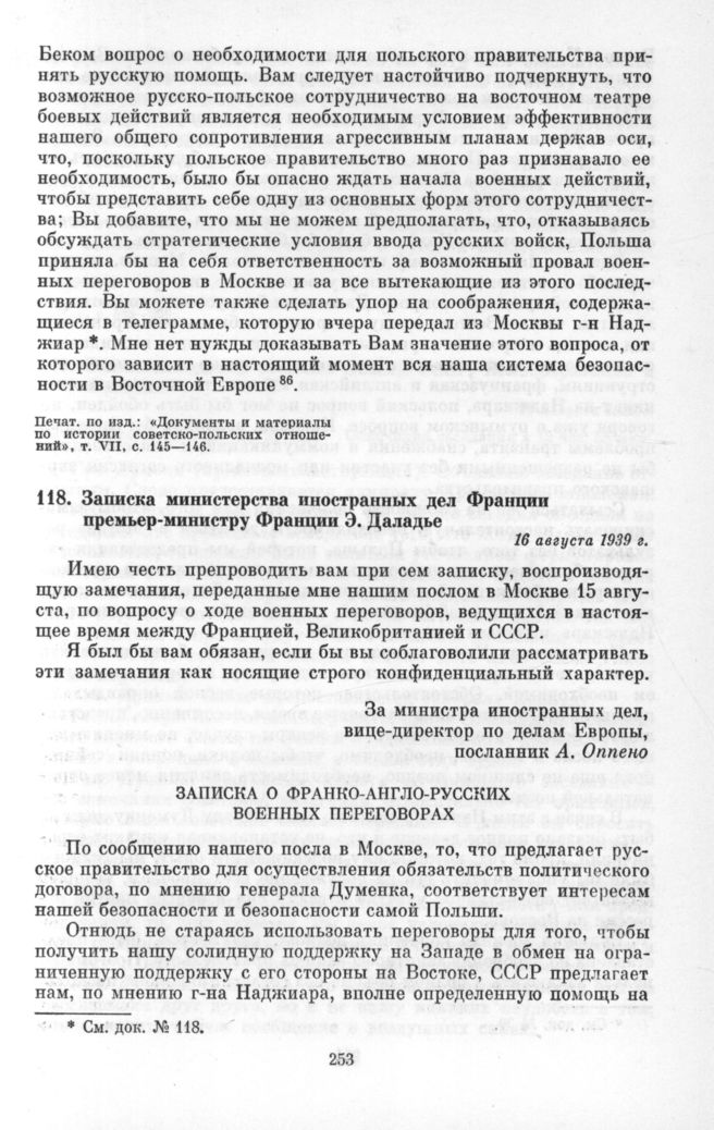 Записка министерства иностранных дел Франции премьер-министру Франции Э. Даладье. 16 августа 1939 г. // Печат. по изд.: «СССР в борьбе за мир...», с. 589—590.
