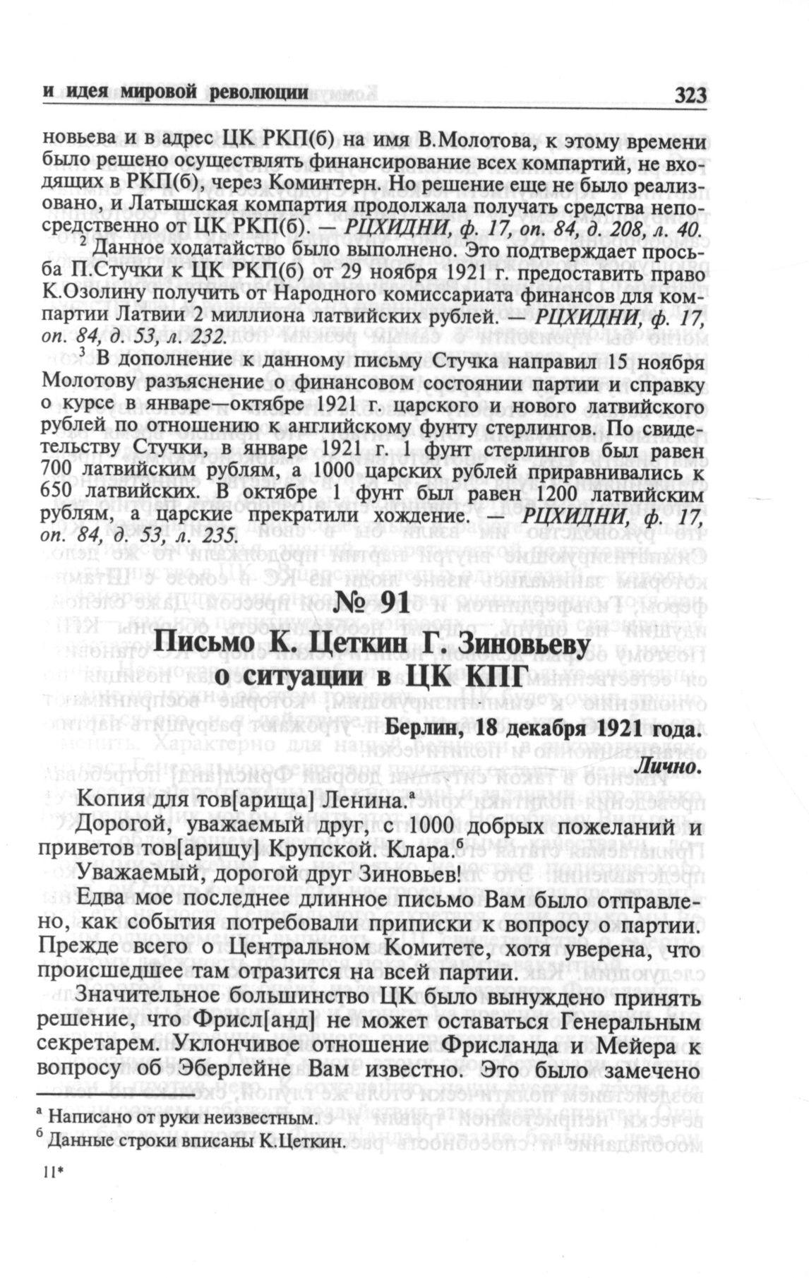 Письмо К. Цеткин Г. Зиновьеву о ситуации в ЦК КПГ. Берлин, 18 декаб...