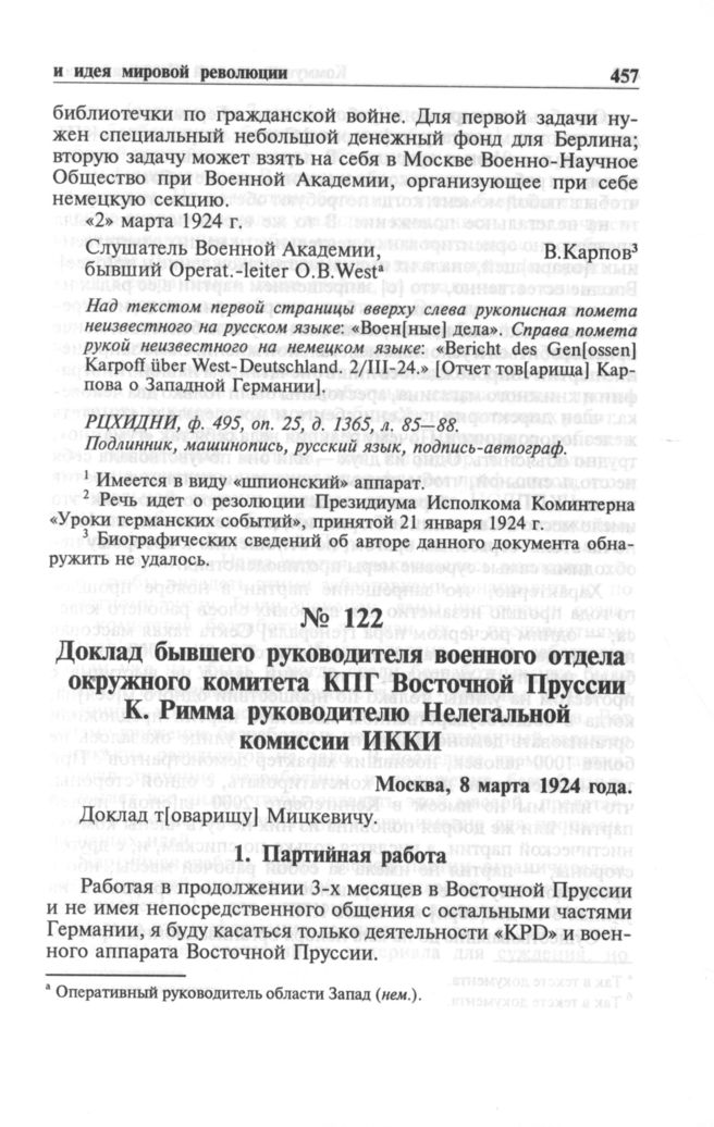 Доклад бывшего руководителя военного отдела окружного комитета КПГ Восточной Пруссии К. Римма руководителю Нелегальной комиссии ИККИ. Москва, 8 марта 1924 года // РЦХИДНИ, ф. 495, оп. 25, д. 1365, л. 89-92 об. Подлинник, русский язык, рукопись, подпись-автограф.