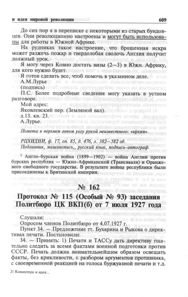 Протокол № 115 (Особый № 93) заседания Политбюро ЦК ВКП(б) от 7 июля 1927 года // РЦХИДНИ, ф. 17, оп. 162, д. 5, л. 63-64. Подлинник, машинопись, русский язык, подпись-факсимиле.