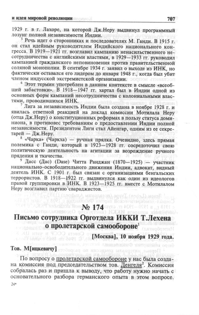 Письмо сотрудника Орготдела ИККИ Т. Лехена о пролетарской самообороне. [Москва], 10 ноября 1929 года