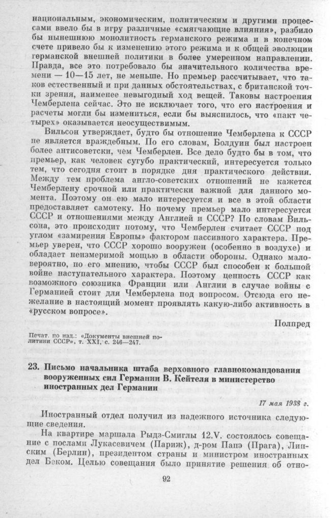 Письмо начальника штаба верховного главнокомандования вооруженных сил Германии В. Кейтеля в министерство иностранных дел Германии. 17 мая 1938 г. // Печат. по изд.: «Аkten zur deutschen auswärtigen Politik. 1918—1945». Serie D, Baden-Baden, 1951, Bd. II, S. 221.