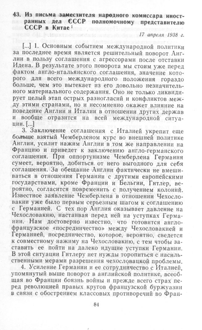 Из письма заместителя народного комиссара иностранных дел СССР полномочному представителю СССР в Китае. 17 апреля 1938 г. // Документы внешней политики СССР. т. XXI. М., 1977, с. 200-202.