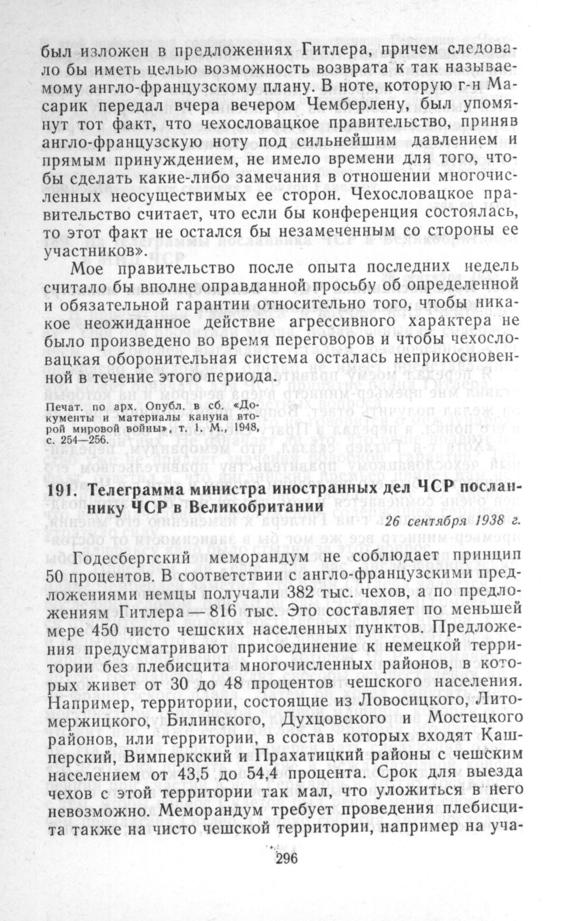 Телеграмма министра иностранных дел ЧСР посланнику ЧСР в Великобритании. 26 сентября 1938 г. // Печат. по арх.