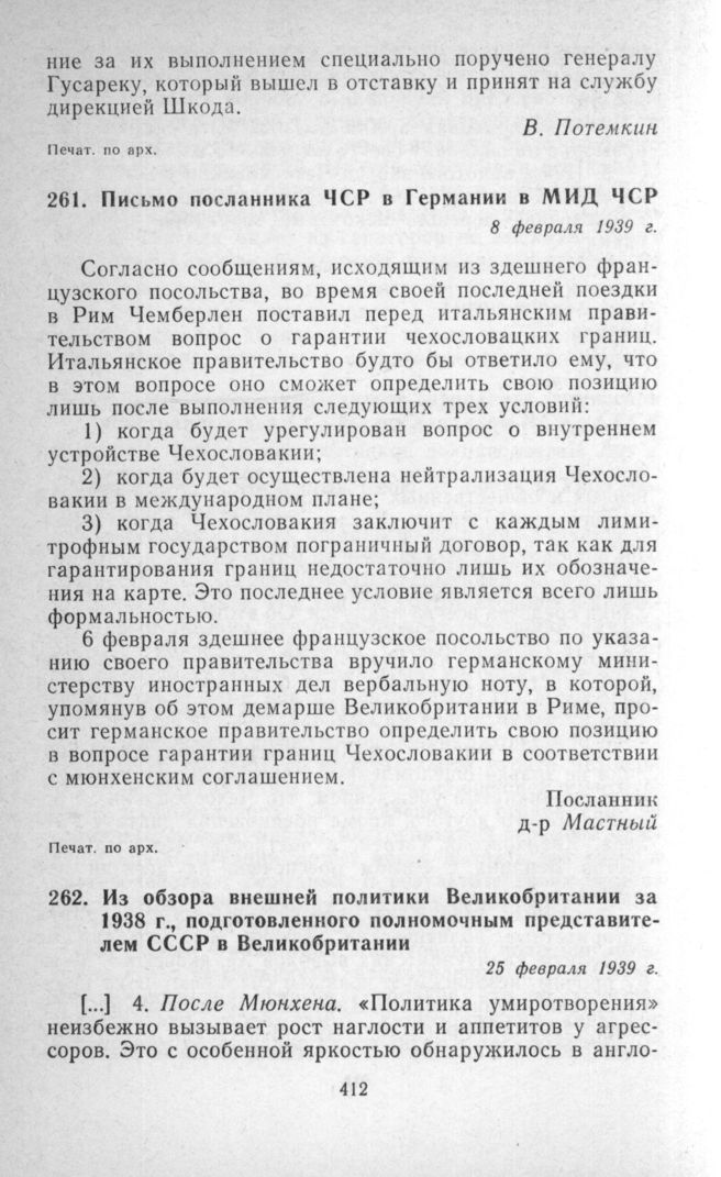 Письмо посланника ЧСР в Германии в МИД ЧСР. 8 февраля 1939 г. // Печат. по арх.
