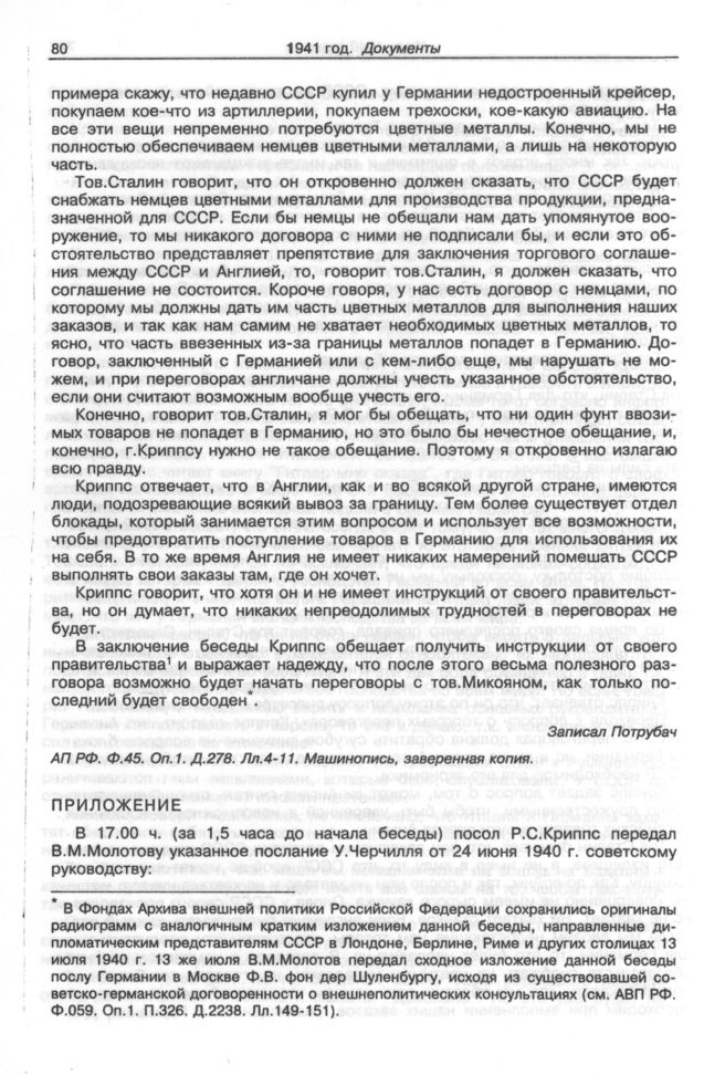 Приложение к Беседе Генерального секретаря ЦК ВКП(б) И.В.Сталина с послом Великобритании в СССР с Р.С.Криппсом в Кремле. 1 июля 1940 г. // АВП РФ. Ф. 06. Оп. 2. П. 10. Д. 100. Лл. 1-2. Машинопись, заверенная копия.