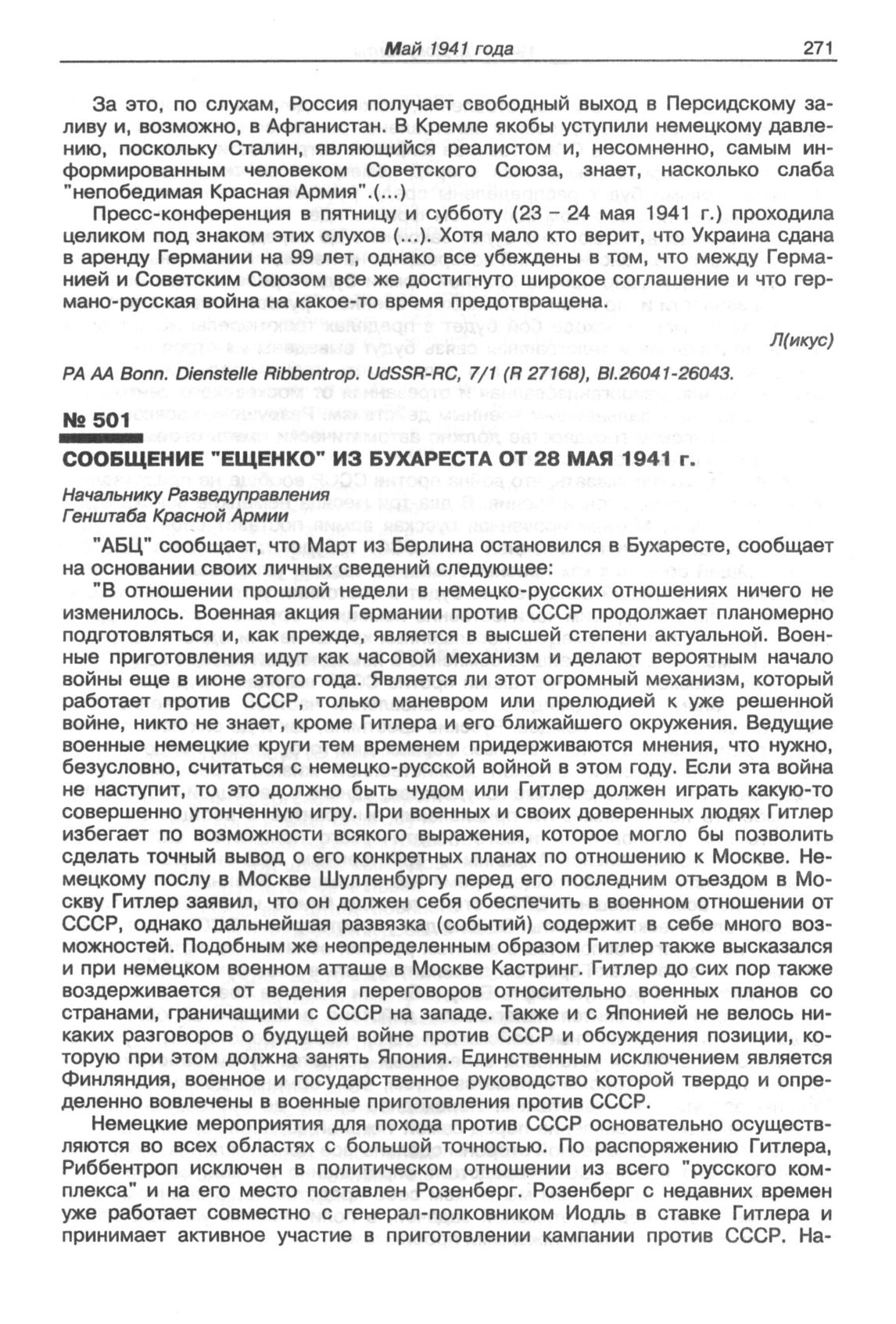 Сообщение "Ещенко" из Бухареста от 28 мая 1941 г. // ЦА МО РФ. Оп. 24119. Д. 1. Лл. 864-874. Заверенная копия.