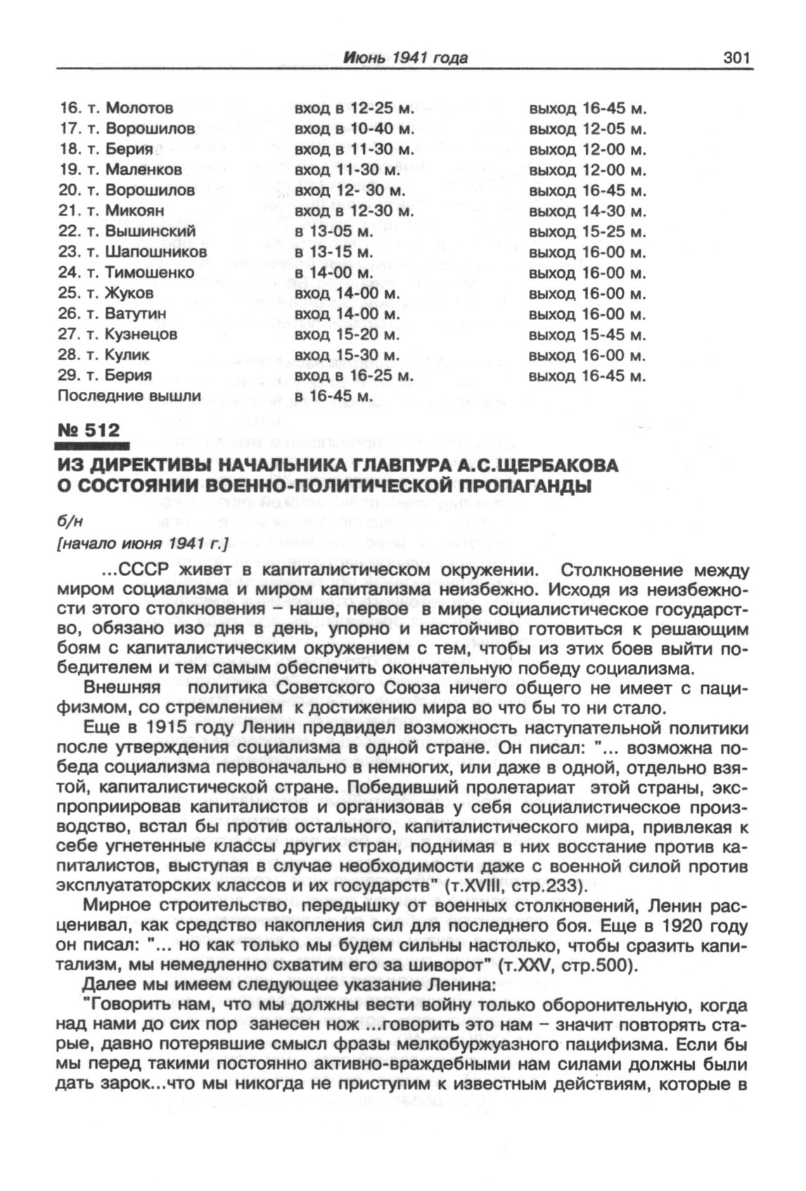 Из директивы начальника Главпура А.С.Щербакова о состоянии военно-политической пропаганды, [Начало июня 1941 г.] // РЦХИДНИ. Ф. 88. Оп. 1. Д. 898. Лл. 14-22. Машинопись, незаверенная копия.