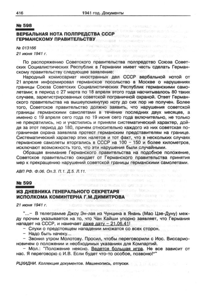 Вербальная нота полпредства СССР Германскому правительству. 21 июня 1941 г.