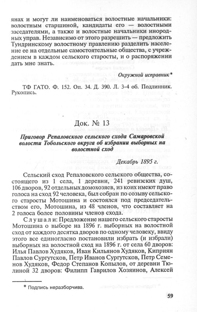 Приговор Репаловского сельского схода Самаровской волости Тобольского округа об избрании выборных на волостной сход. Декабрь 1895 г. // ТФ ГАТО. Ф. 346. Oп. 1. Д. 36. Л. 123-123 об. Копия. Рукопись.