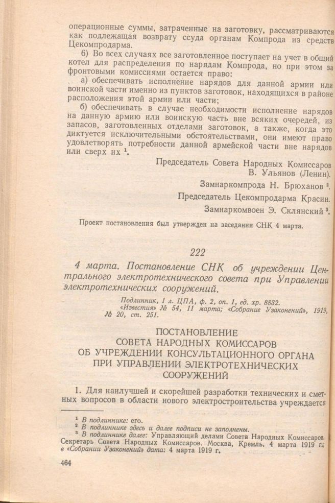 Главная Серия «Экономическая история. Документы, исследования, переводы» Декреты советской власти в 18 т. Декреты Советской власти. Т. IV. 10 ноября 1918 г. – 31 марта 1919 г. Документы 4 марта. Постановление СНК об учреждении Центрального электротехнич...