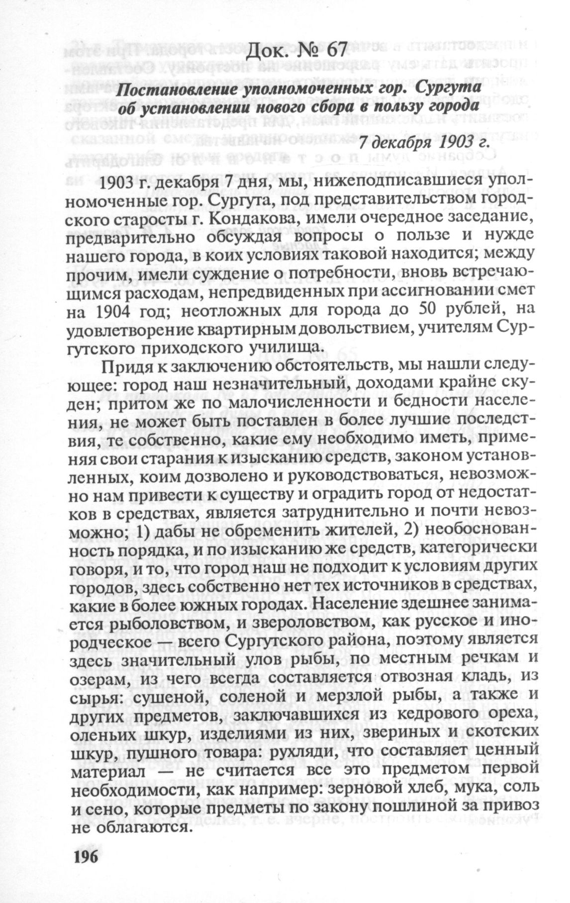 Постановление уполномоченных гор. Сургута об установлении нового сбора в пользу города. 7 декабря 1903 г. // ТФ ГАТО. Ф. 152. Оп. 35. Д. 625. Л. 49—51 об. Заверенная копия. Рукопись.