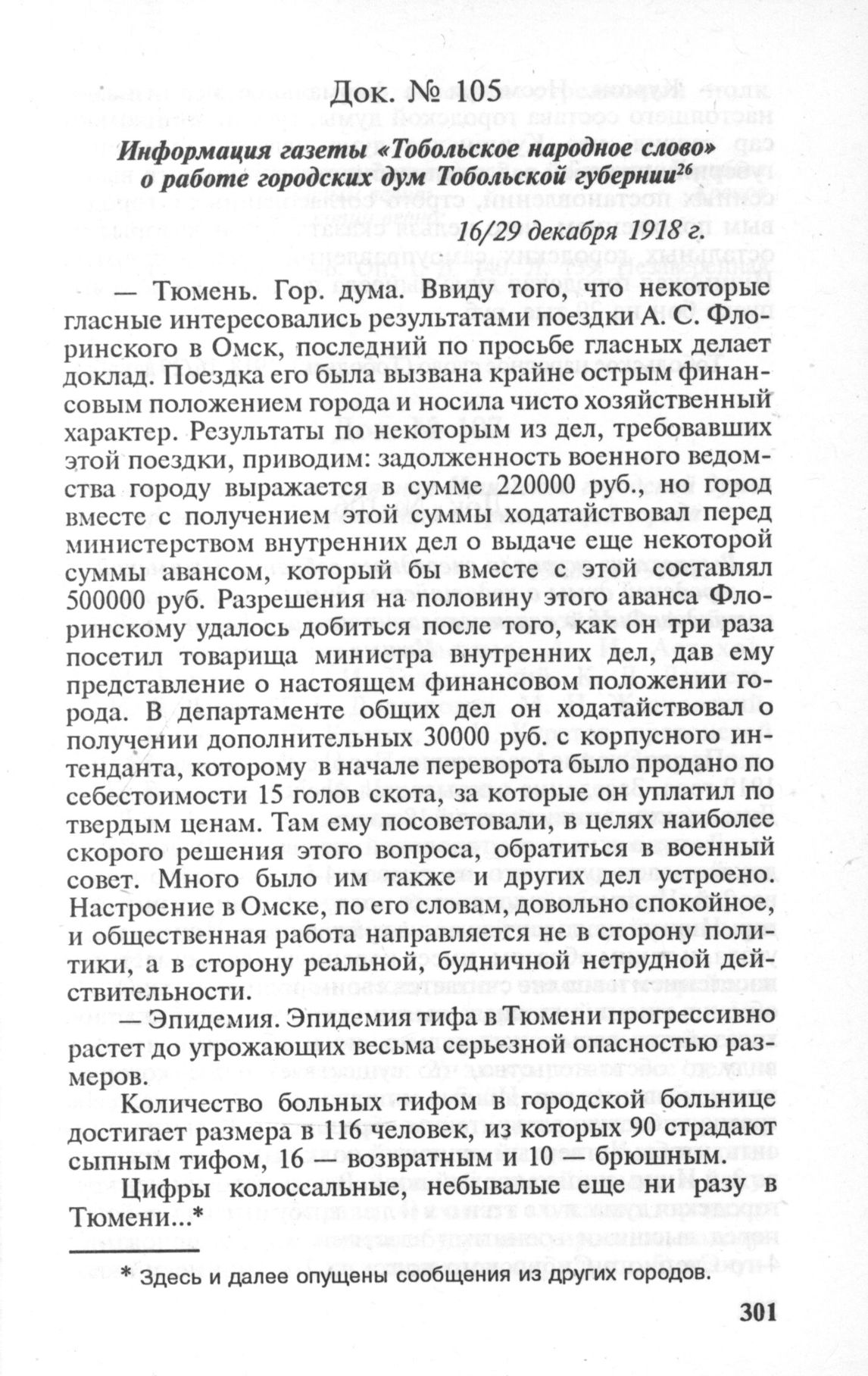 Информация газеты «Тобольское народное слово» о работе городских дум Тобольской губернии. 16/29 декабря 1918 г. // Тобольское народное слово (Тобольск). 1918.1 6/29 декабря.