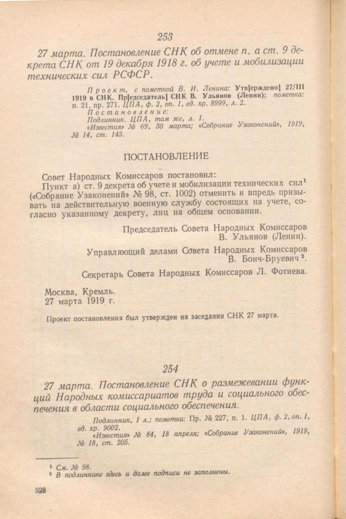 Главная Серия «Экономическая история. Документы, исследования, переводы» Декреты советской власти в 18 т. Декреты Советской власти. Т. IV. 10 ноября 1918 г. – 31 марта 1919 г. Документы 27 марта. Постановление СНК об отмене п. а ст. 9 декрета СНК от 19 ...