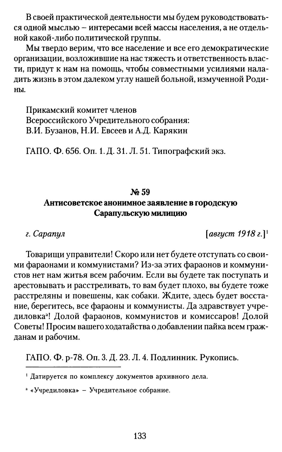 Антисоветское анонимное заявление в городскую Сарапульскую милицию. г. Сарапул, август 1918 г. // ГАПО. Ф. р-78. Оп. 3. Д. 23. Л. 4. Подлинник. Рукопись.