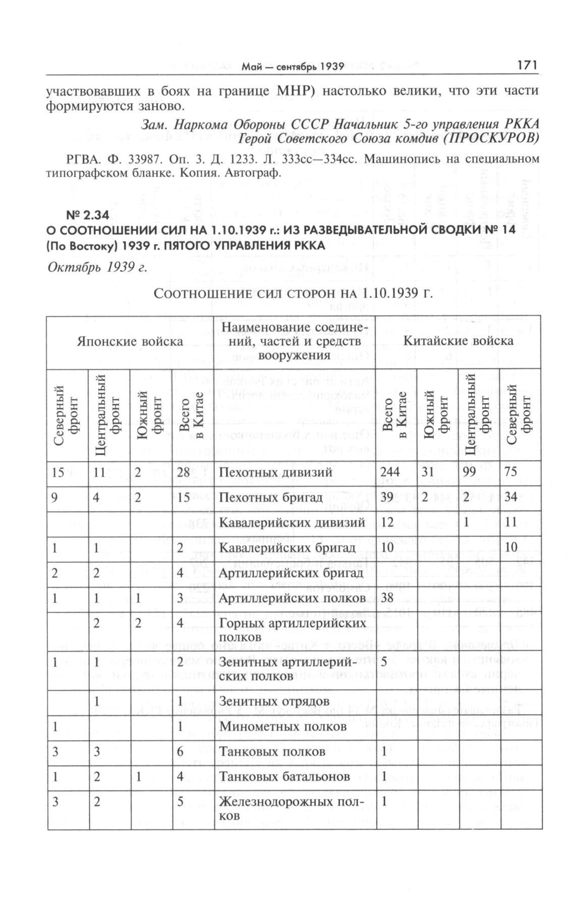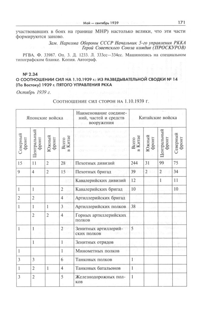 О соотношении сил на 1.10.1939 г.: из разведывательной сводки № 14 (по Востоку) 1939 г. Пятого Управления РККА. Октябрь 1939 г. // Разведывательная сводка № 14 (по Востоку). М.: 5 Управление РККА, 1939 г. С. 24. Типографское издание. Копия.