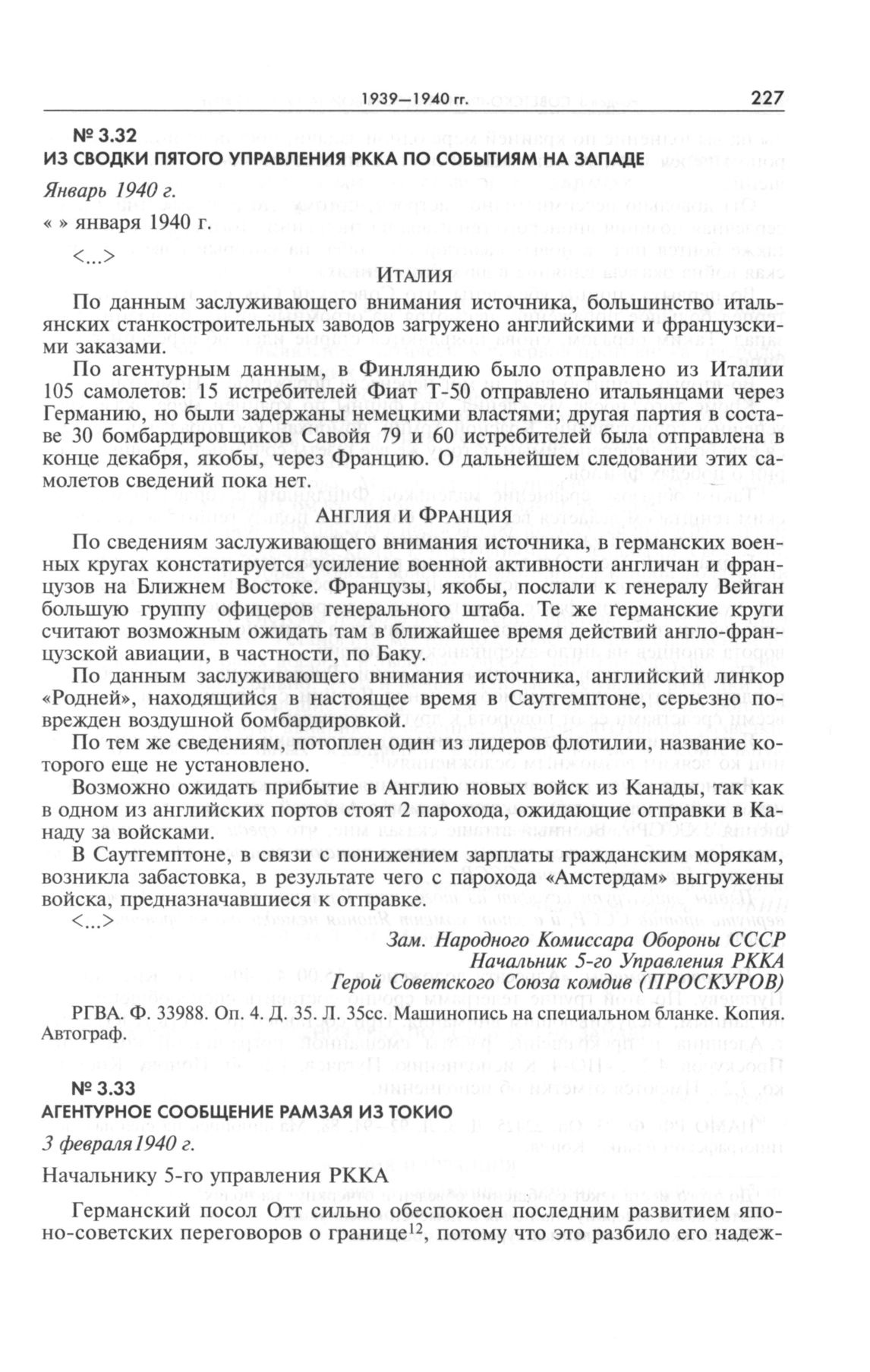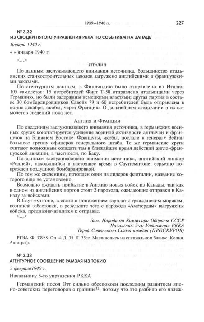 Из сводки Пятого Управления РККА по событиям на Западе. Январь 1940 г. // РГВА. Ф. 33988. Оп. 4. Д. 35. Л. 35сс. Машинопись на специальном бланке. Копия. Автограф.