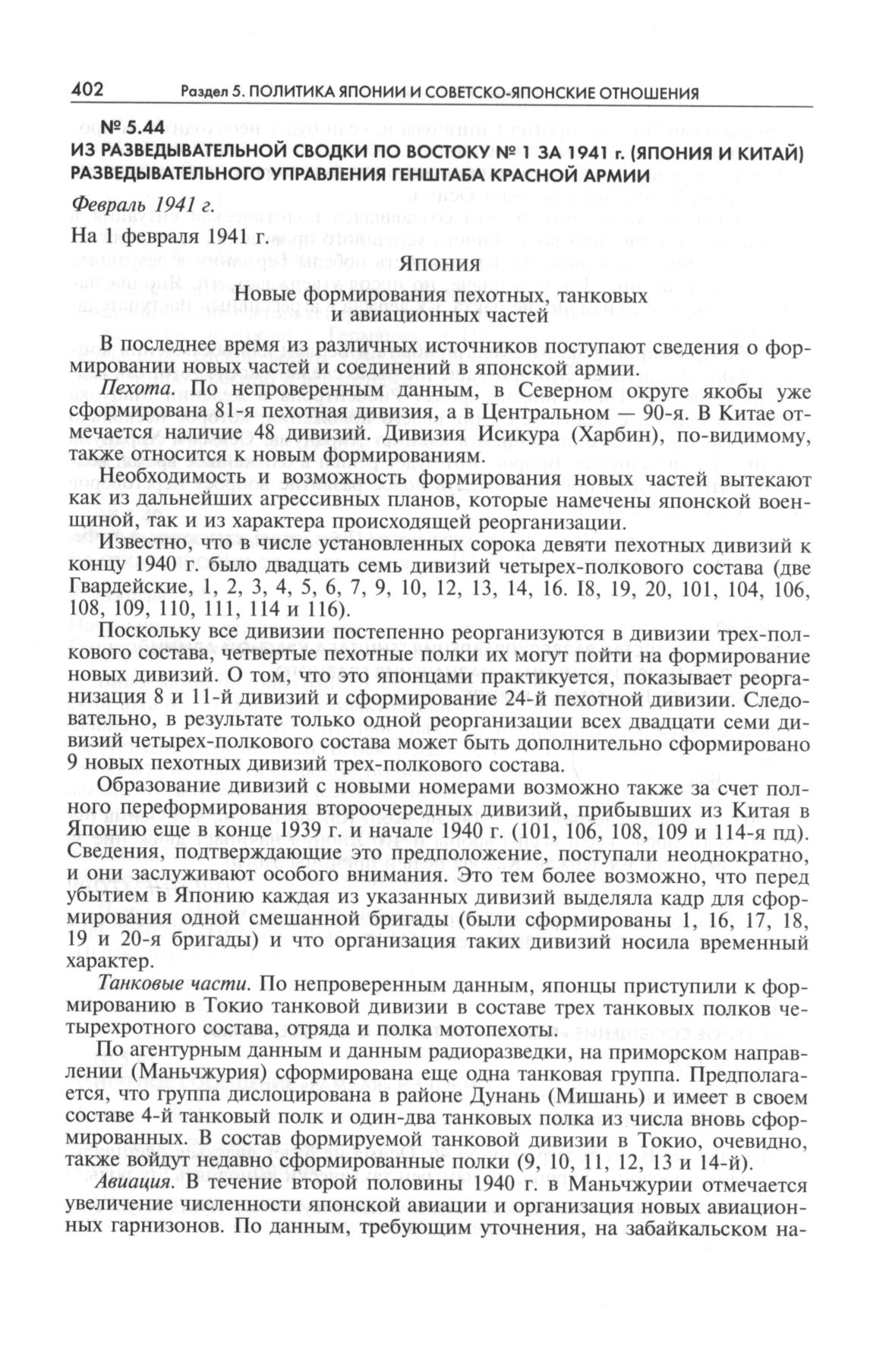 Разведывательная сводка по Востоку № 1 (Япония и Китай). М.: РУ ГШ РККА, 1941. С. 3-28.