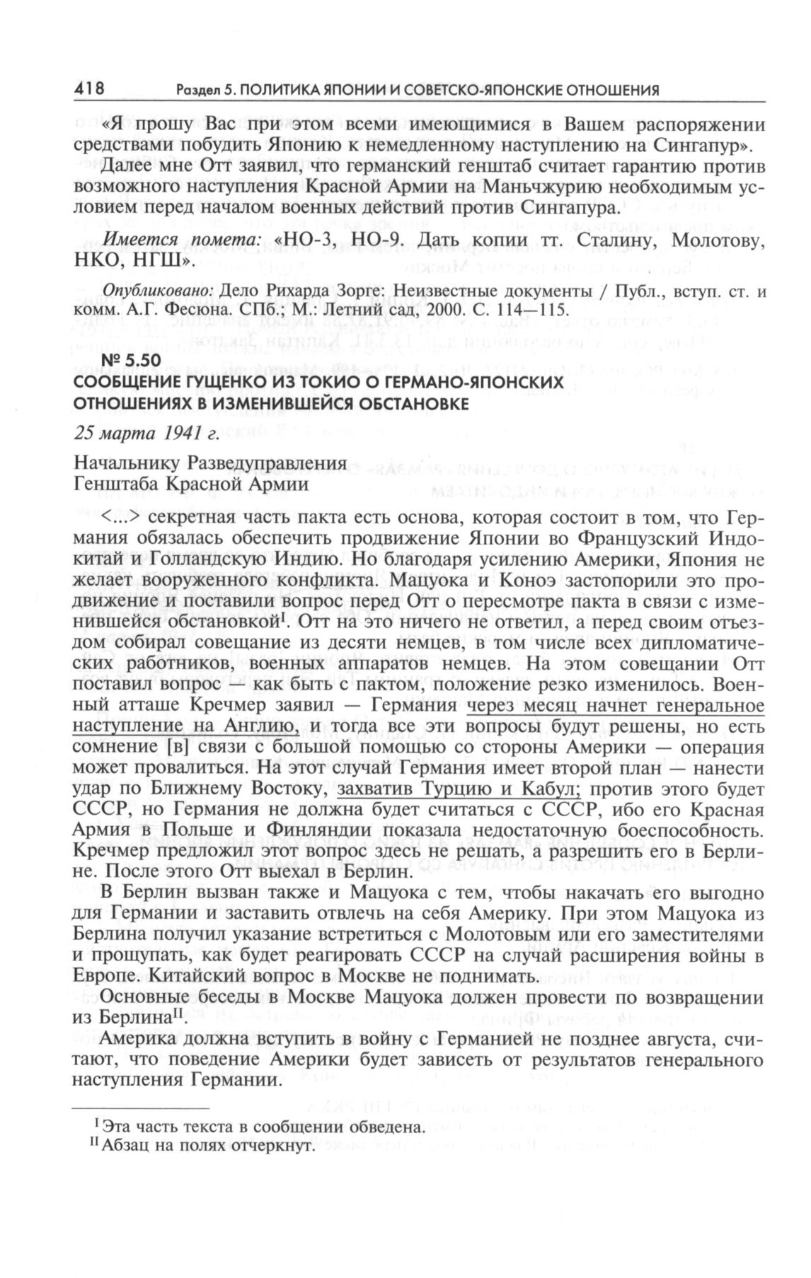 Сообщение Гущенко из Токио о германо-японских отношениях в изменившейся обстановке. 25 марта 1941 г. // ЦА МО РФ. Ф. 23. Оп. 24127. Д. 2. Л. 247-248. Машинопись на специальном типографском бланке. Копия.