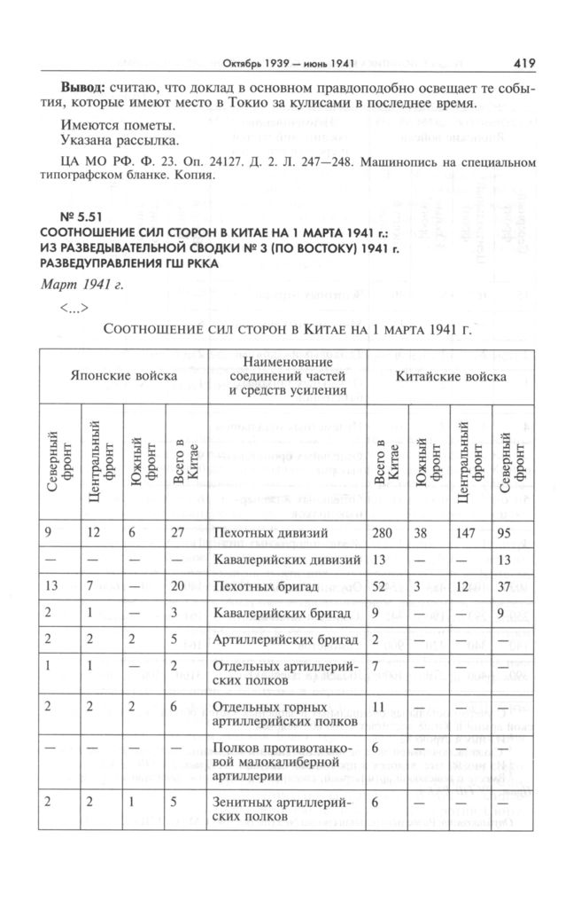 Соотношение сил сторон в Китае на 1 марта 1941 г.: из разведывательной сводки №3 (по Востоку) 1941 г. Разведуправления ГШ РККА. Март 1941 г. // Опубликовано: Разведывательная сводка № 3 (по Востоку). М.: РУ ГШ РККА, 1941. С. 25.