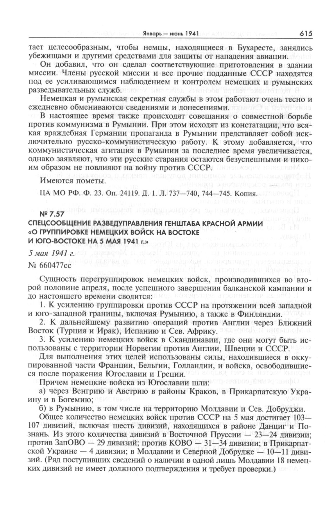 Спецсообщение Разведуправления генштаба Красной Армии «О группировке немецких войск на Востоке и Юго-Востоке на 5 мая 1941 г.». 5 мая 1941 г. // ЦА МО РФ. Ф. 23. Оп. 7237. Д. 2. Л. 97—102. Машинопись, заверенная копия.