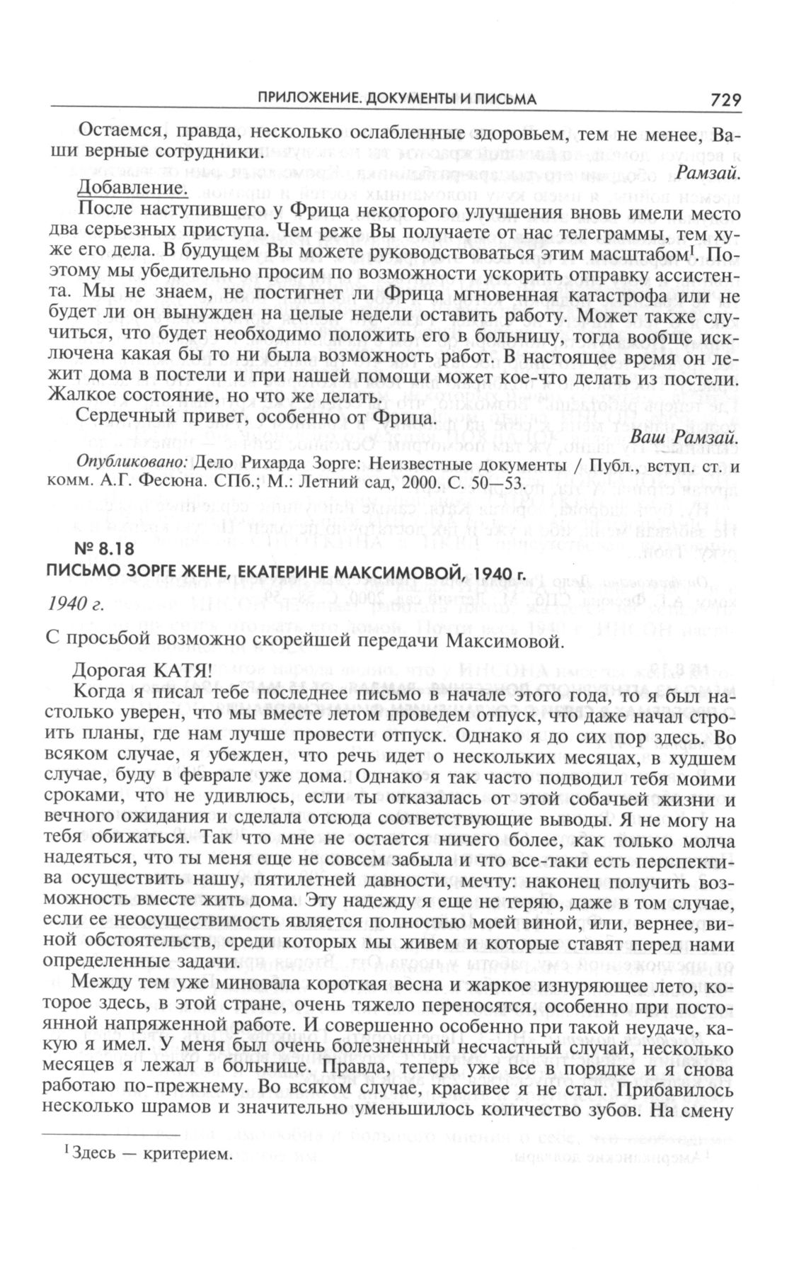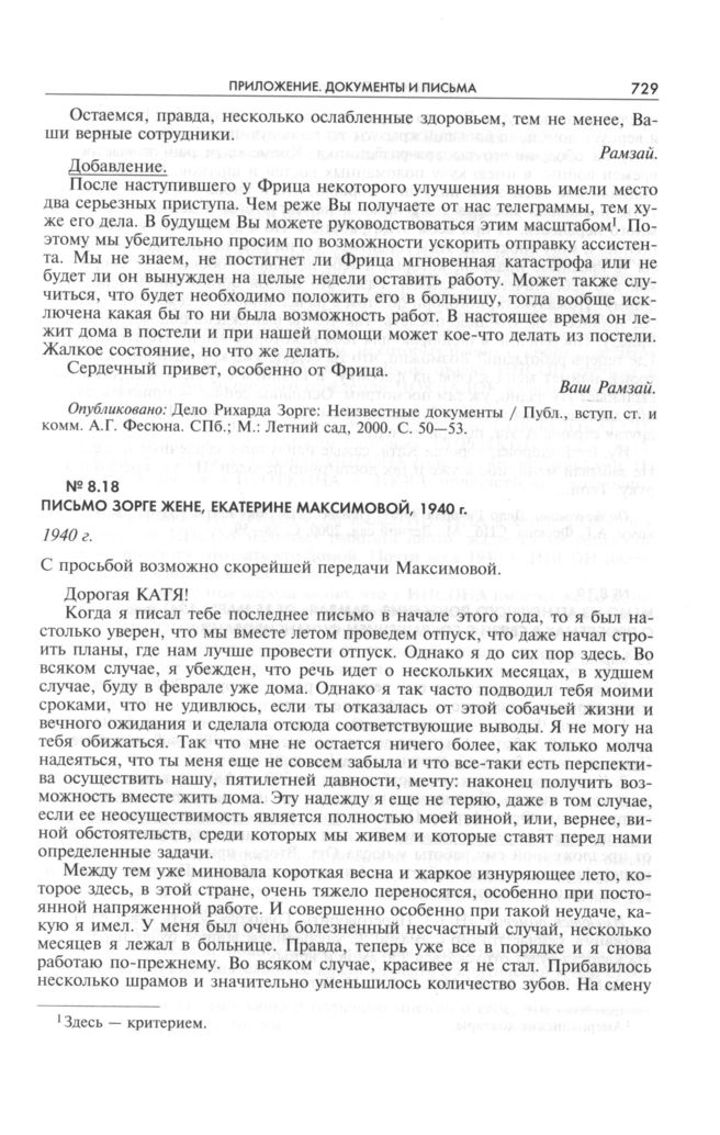 Дело Рихарда Зорге: Неизвестные документы / Публ., вступ. ст. и комм. А.Г. Фесюна. СПб.; М.: Летний сад, 2000. С. 58-59.