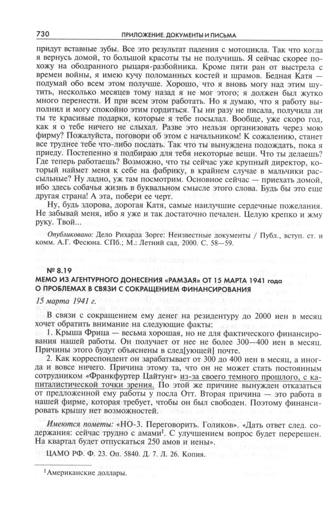 Мемо из агентурного донесения «Рамзая» от 15 марта 1941 года о проблемах в связи с сокращением финансирования. 15 марта 1941 г.