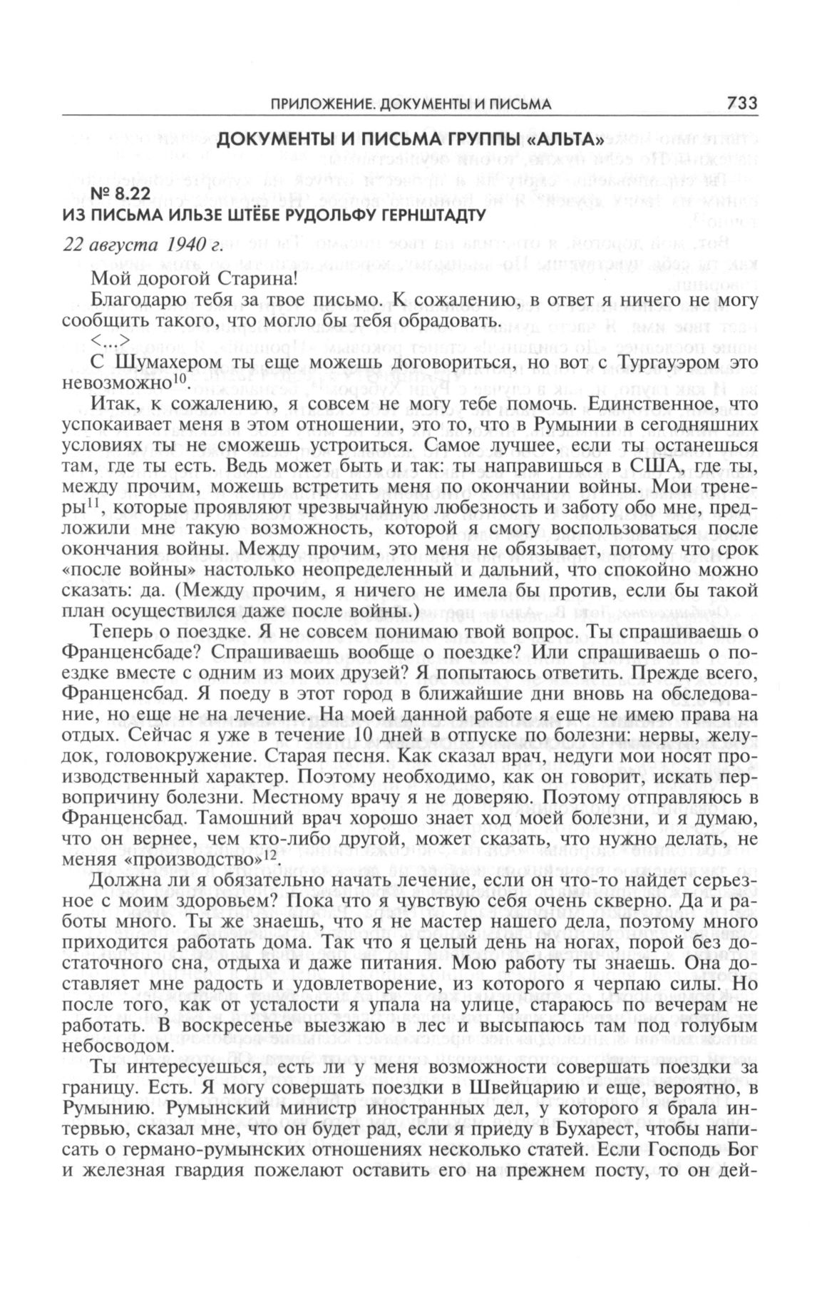 Из письма Ильзе Штёбе Рудольфу Гернштадту. 22 августа 1940 г. // Опубликовано: Лота В. «Альта» против «Барбароссы». М.: Молодая гвардия, 2004. С. 266-269.