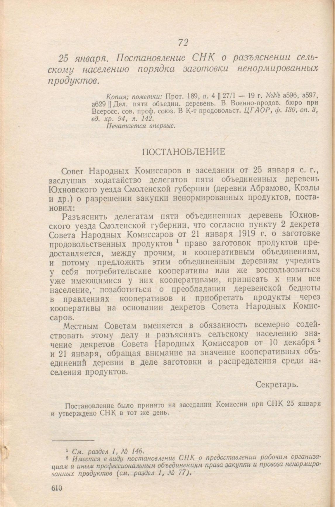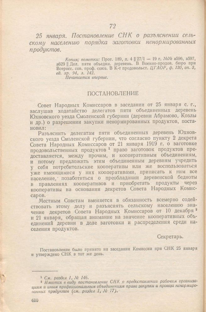 Главная Серия «Экономическая история. Документы, исследования, переводы» Декреты советской власти в 18 т. Декреты Советской власти. Т. IV. 10 ноября 1918 г. – 31 марта 1919 г. Документы 25 января. Постановление СНК о разъяснении сельскому населению поря...