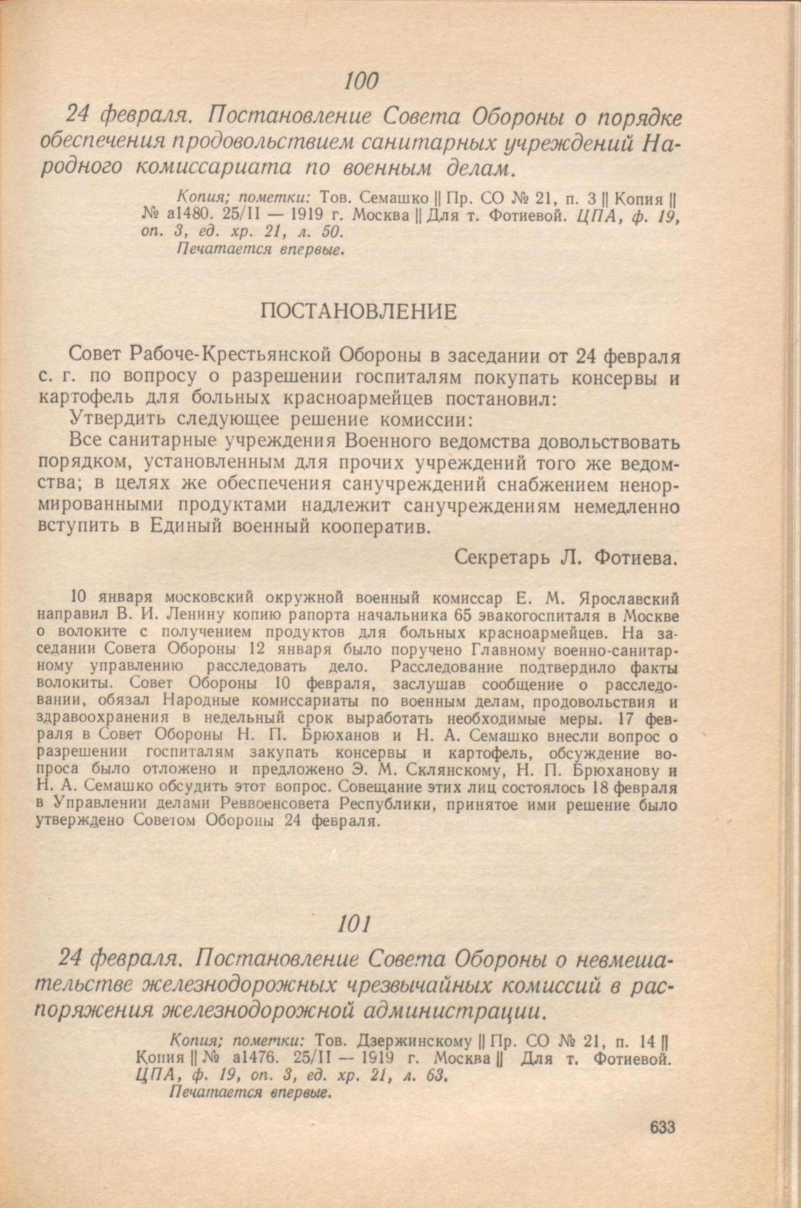 Главная Серия «Экономическая история. Документы, исследования, переводы» Декреты советской власти в 18 т. Декреты Советской власти. Т. IV. 10 ноября 1918 г. – 31 марта 1919 г. Документы 24 февраля. Постановление Совета Обороны о невмешательстве железнод...