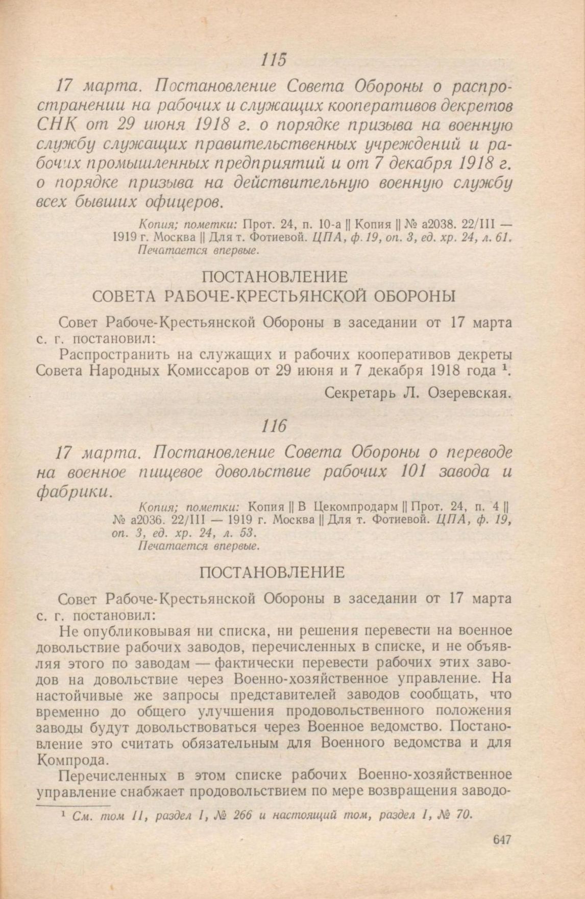 Главная Серия «Экономическая история. Документы, исследования, переводы» Декреты советской власти в 18 т. Декреты Советской власти. Т. IV. 10 ноября 1918 г. – 31 марта 1919 г. Документы 17 марта. Постановление Совета Обороны о переводе на военное пищево...