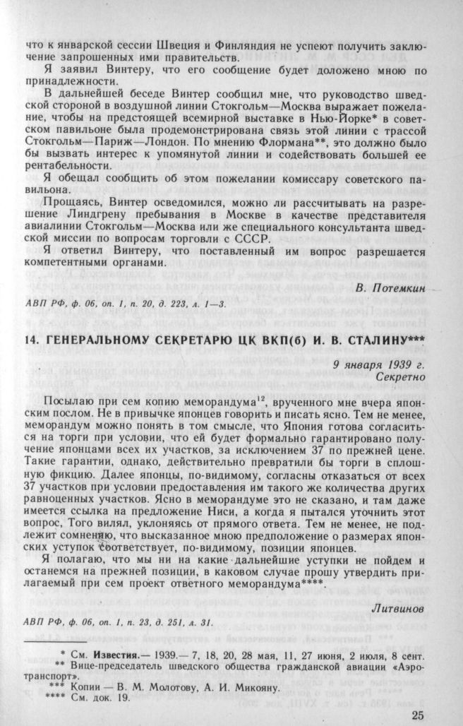 Генеральному секретарю ЦК ВКП(б) И. В. Сталину. 9 января 1939 г. // АВП РФ, ф. 06, oп. 1. п. 23, д. 251, л. 31.