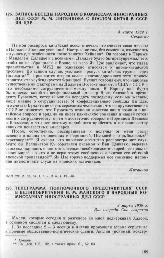 Телеграмма полномочного представителя СССР в Великобритании И. М. Майского в Народный комиссариат иностранных дел СССР. 8 марта 1939 г. // АВП РФ, ф. 059, oп. 1, п. 300, д. 2075, л. 147—152.