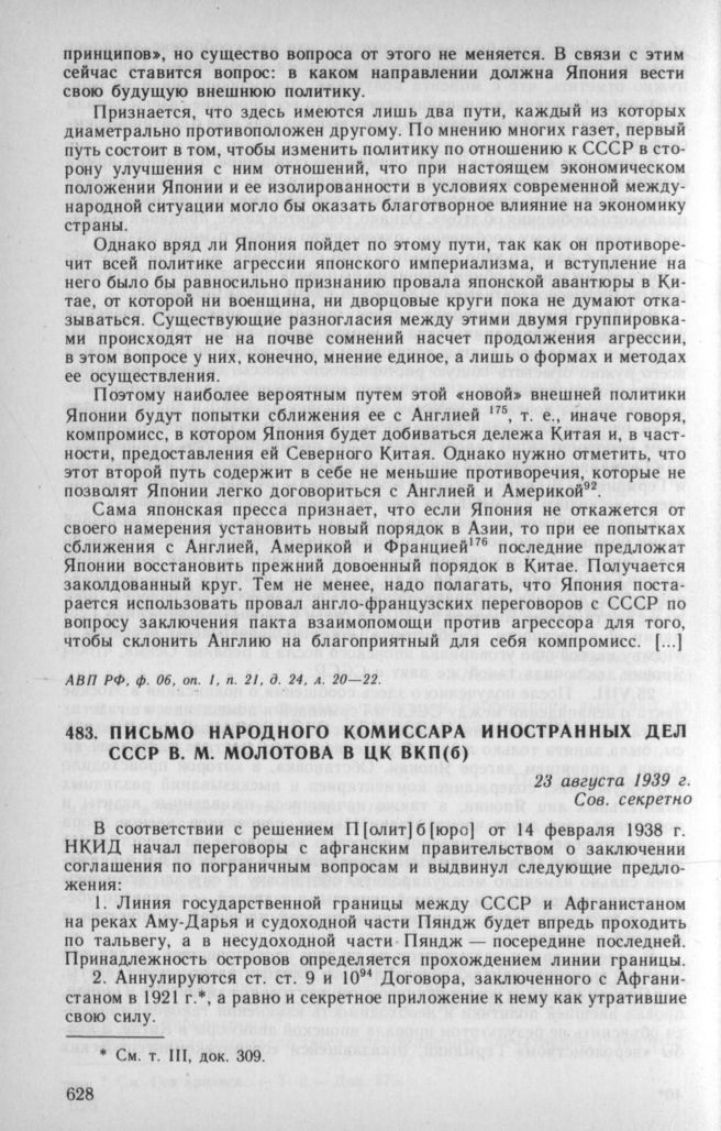 Письмо народного комиссара иностранных дел СССР В. М. Молотова в ЦК ВКП(б). 23 августа 1939 г. // АВП РФ, ф. 06, oп. 1, п. 2, д. 10, л. 64—67.