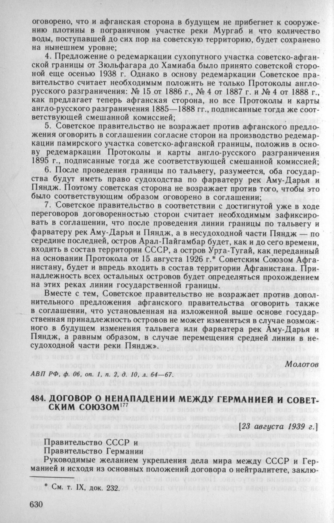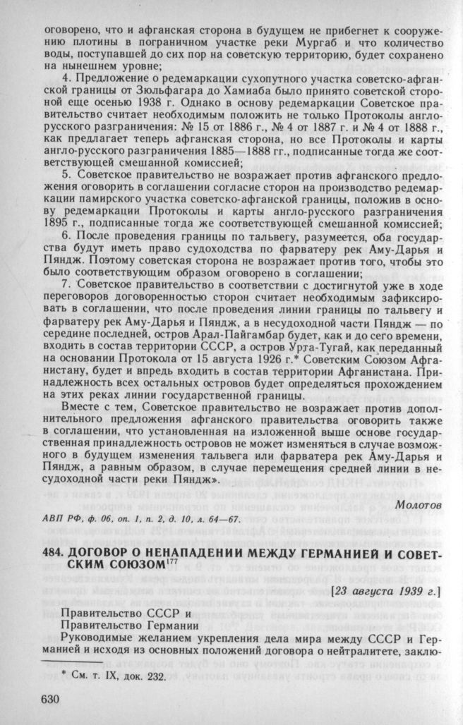 Договор о ненападении между Германией и Советским Союзом. [23 августа 1939 г.] // АВП РФ, ф. 3а, д. 243 — Германия.; Известия. 1939. 24 августа.