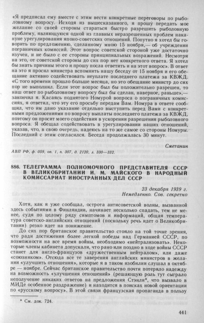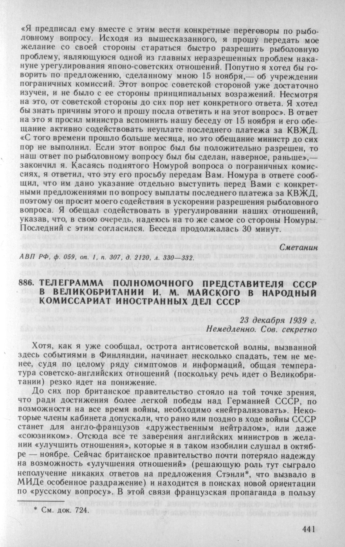 Телеграмма полномочного представителя СССР в Великобритании И. М. Майского в Народный комиссариат иностранных дел СССР. 23 декабря 1939 г. // АВП РФ, ф. 059, oп. 1, п. 300, д. 2078, л. 383—385.