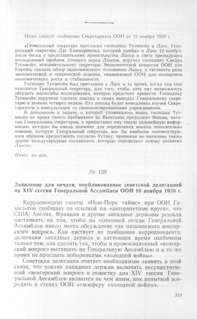 Сообщение Секретариата ООН от 15 ноября 1959 г. // Печат. по арх.