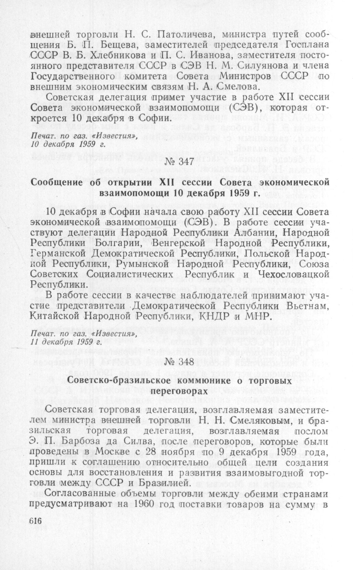 Советско-бразильское коммюнике о торговых переговорах // Печат. по газ. «Известия», 11 декабря 1959 г.