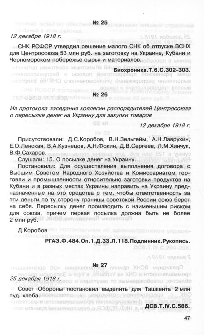 Совет Обороны постановил выделить для Ташкента 2 млн пуд. хлеба. 25 декабря 1918 г. // ДСВ. Т. IV. С. 586.