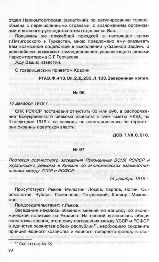 СНК РСФСР постановил отпустить 63 млн руб. в распоряжение Всеукраинского ревкома... 10 декабря 1919 г. // ДСВ. Т. VII. С. 610.