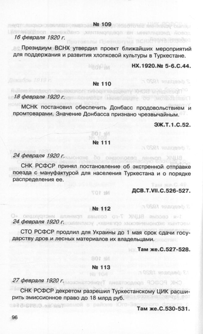 Президиум ВСНХ утвердил проект ближайших мероприятий для поддержания и развития хлопковой культуры в Туркестане. 16 февраля 1920 г. // НХ. 1920. № 5 - 6. С. 44.