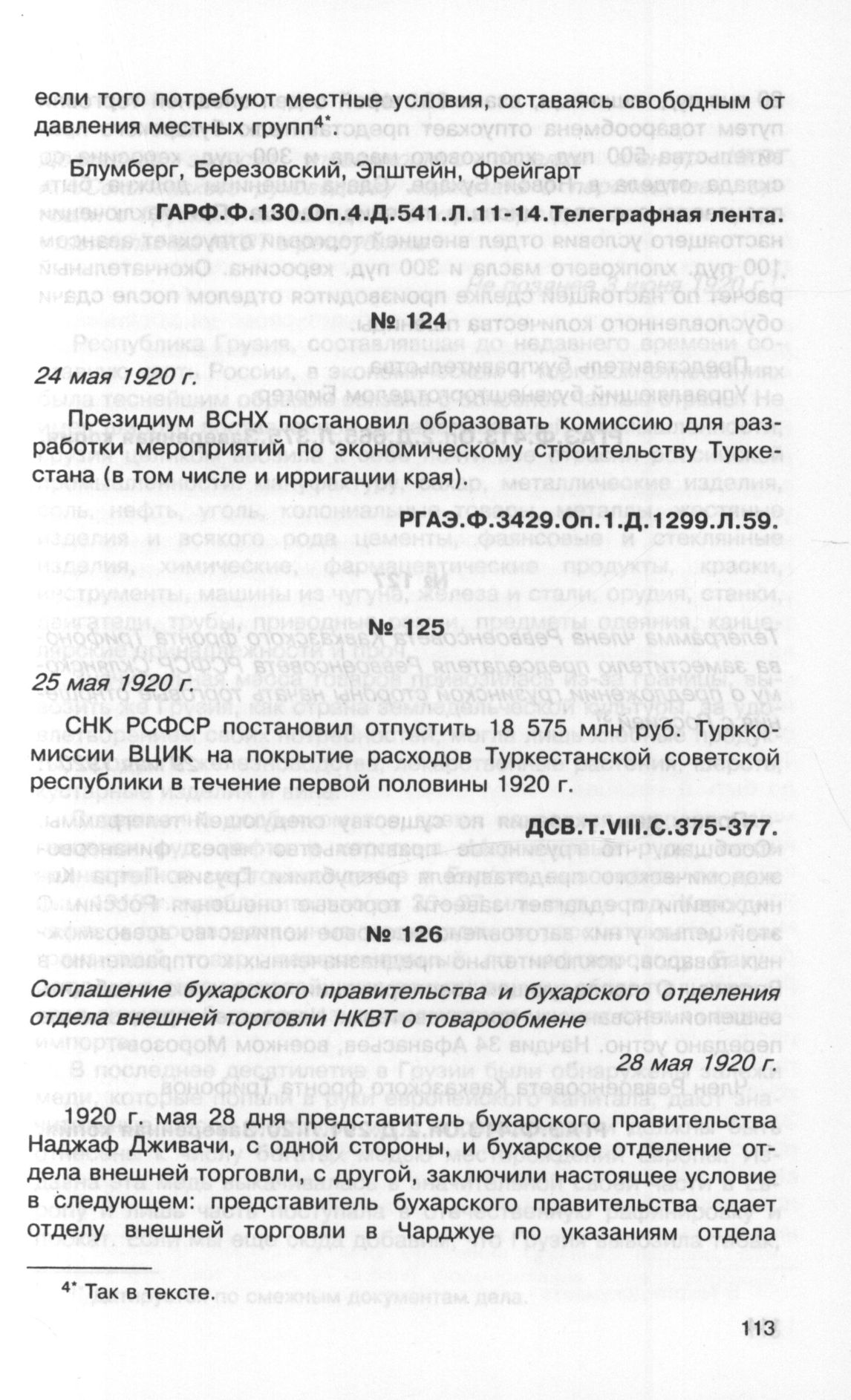 Президиум ВСНХ постановил образовать комиссию для разработки мероприятий по экономическому строительству Туркестана (в том числе и ирригации края). 24 мая 1920 г. // РГАЭ. Ф. 3429. Оп. 1. Д. 1299. Л. 59.