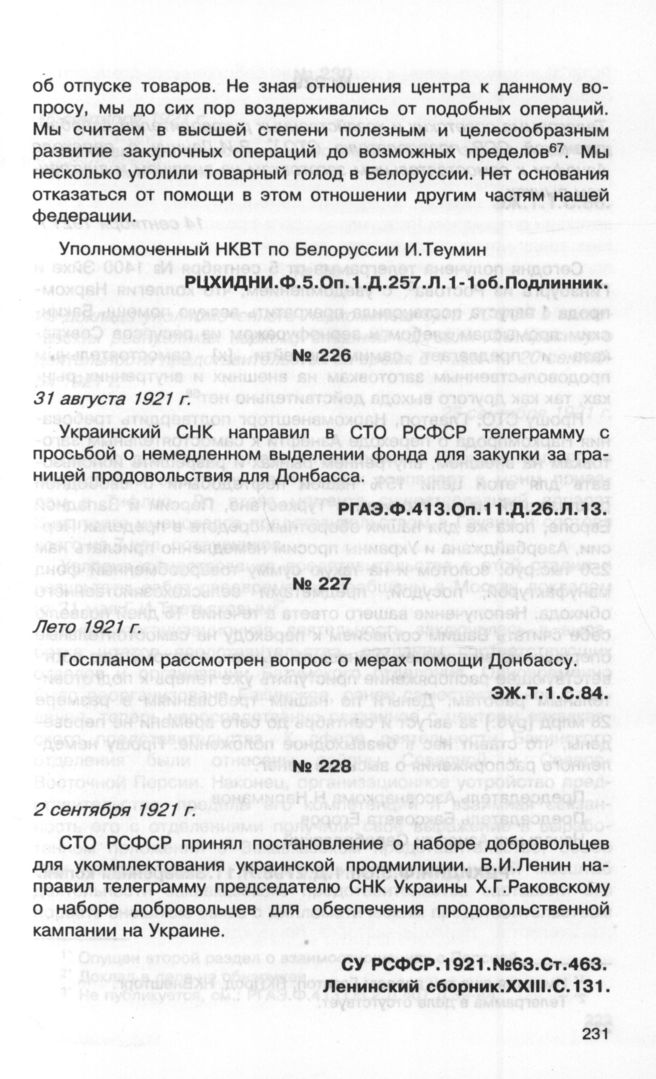 СТО РСФСР принял постановление о наборе добровольцев для укомплектования украинской продмилиции... 2 сентября 1921 г. // СУ РСФСР. 1921. № 63. Ст. 463. Ленинский сборник. ХХIII. С. 131.