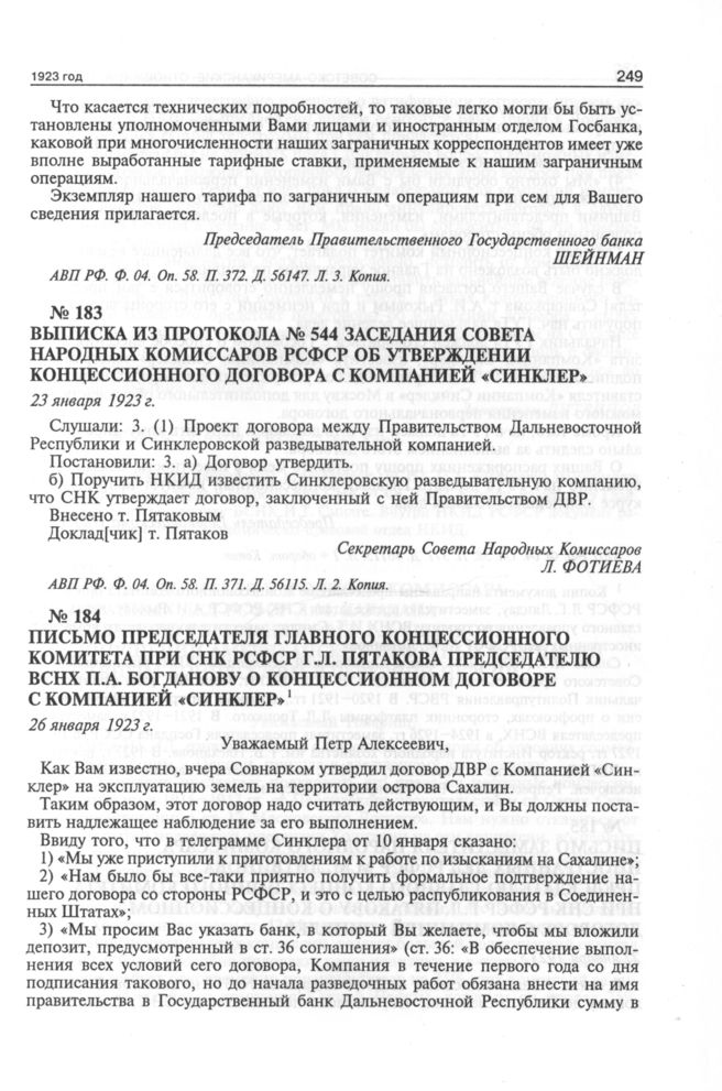 Письмо председателя Главного концессионного комитета при СНК РСФСР Г.Л. Пятакова председателю ВСНХ П.А. Богданову о концессионном договоре с компанией «Синклер». 26 января 1923 г. // АВП РФ. Ф. 04. Oп. 58. П. 371. Д. 56115. Л. 1 + оборот. Копия.