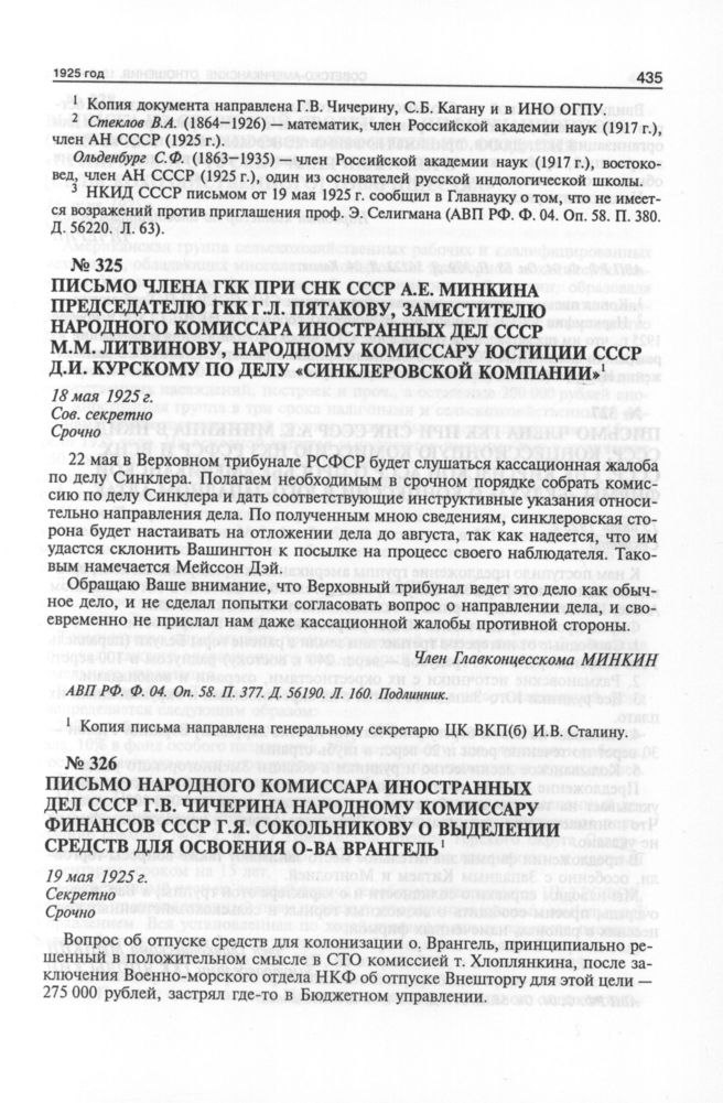 Письмо народного комиссара иностранных дел СССР Г.В. Чичерина на­родному комиссару финансов СССР Г.Я. Сокольникову о выделении средств для освоения о-ва Врангель. 19 мая 1925 г.