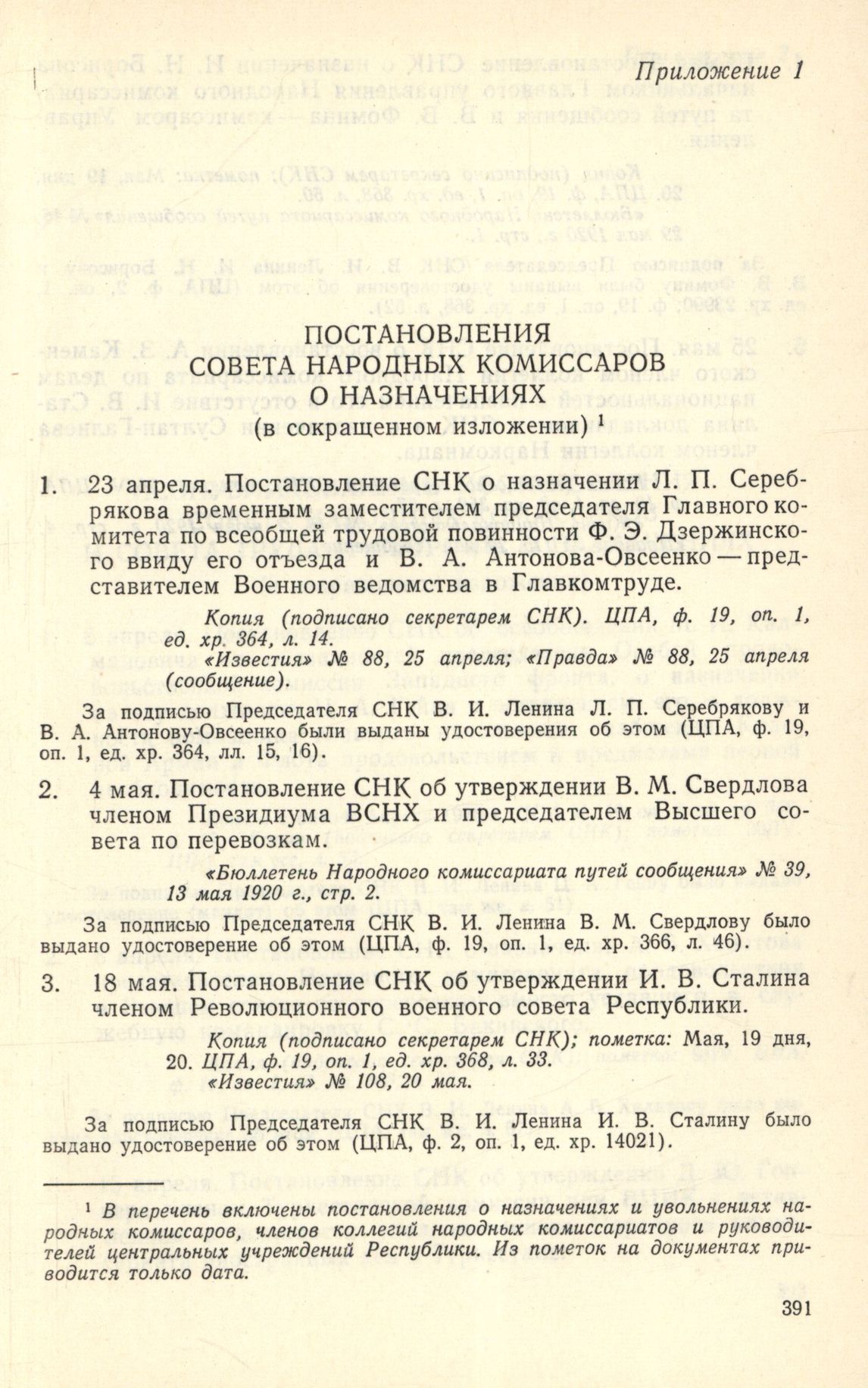 18 мая. Постановление СНК об утверждении И. В. Сталина членом Революционного военного совета Республики // Копия (подписано секретарем СНК); пометка: Мая, 19 дня, 20. ЦПА, ф. 19, оп. 1, ед. хр. 368, л. 33. «Известия» № 108, 20 мая.