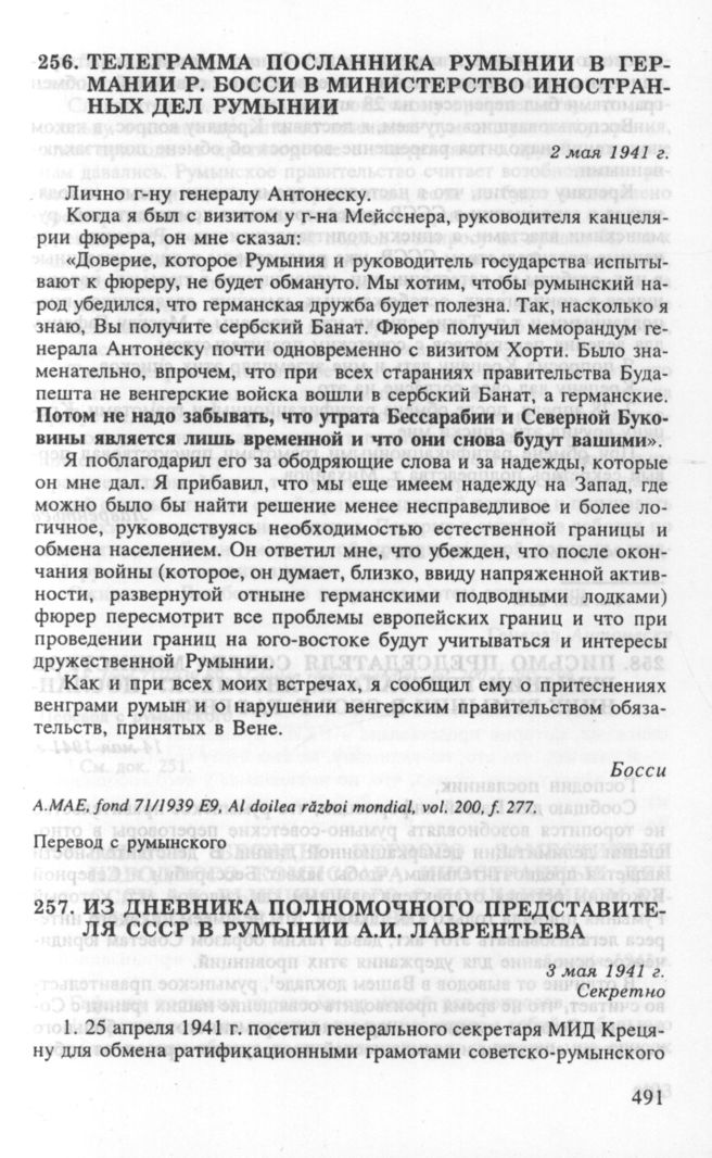 Из дневника полномочного представителя СССР в Румынии А.И. Лаврентьева. 3 мая 1941 г. // АВП РФ, ф. 06, oп. 3, п. 19, д. 254, л. 97.